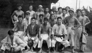 前列左から、太田二段、嵐先輩(三段)、沢山師範、山脇氏(六段)、金村初段