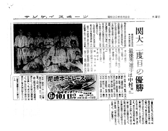 各チーム10名の勝ちぬき戦、3本勝負を展開、予想通り関大、関学が優勝を争い、関大の青野、 中村が予想以上の活躍をみせ、中川、和田、塩見、丸柱、岡本の五人を残して、優勝をとげた。
