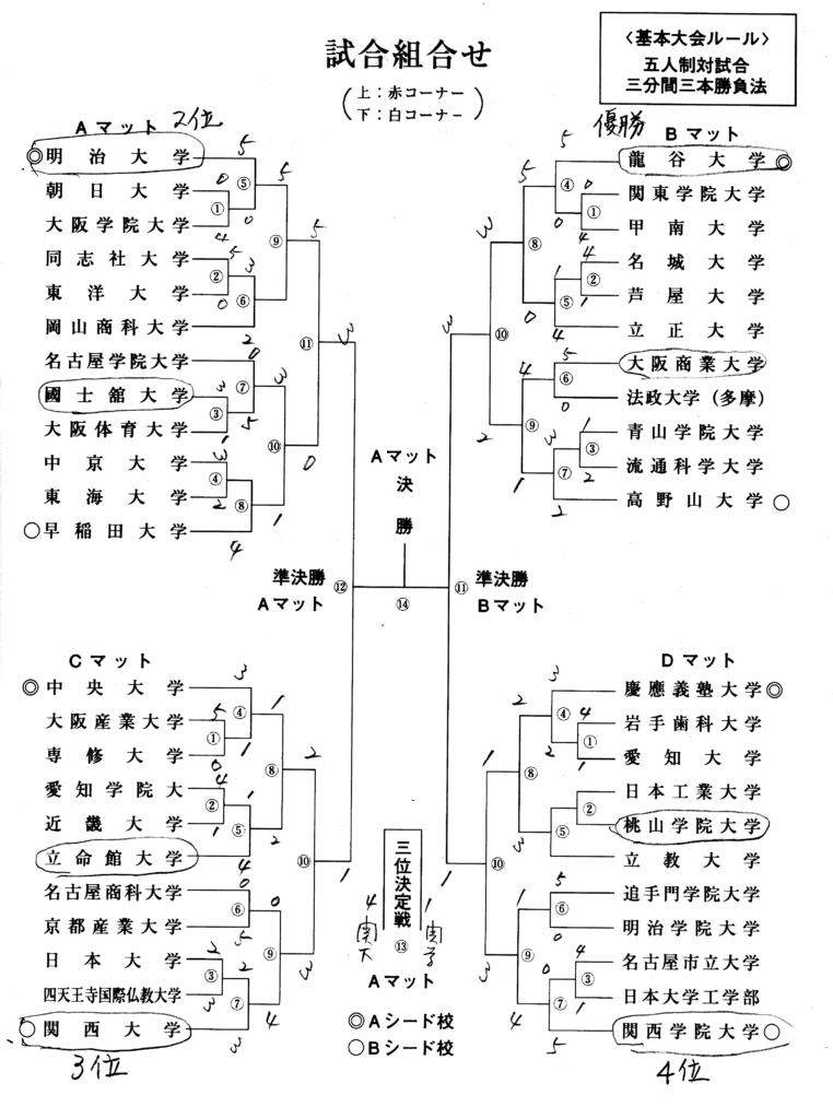 | 濱口 二段 | 突胴、面膝 | ○ーX | 蹴胴 | 竹谷 一級 |